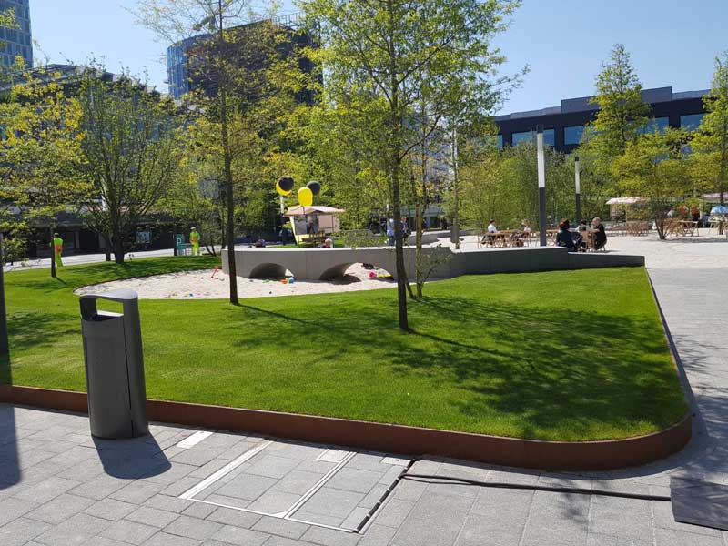 De gemeente Amsterdam wilde “Het creëren van een veilige en groene plek, waar men samen kan komen en ruimte is om te spelen.” Daarnaast wilden zij dat het gehele maaiveld een hoogwaardige uitstraling heeft. Zo is er gekozen voor een infinity pool en een dierenband van in totaal 161 granieten elementen. Deze granieten elementen zijn per element in 3D ontworpen.
