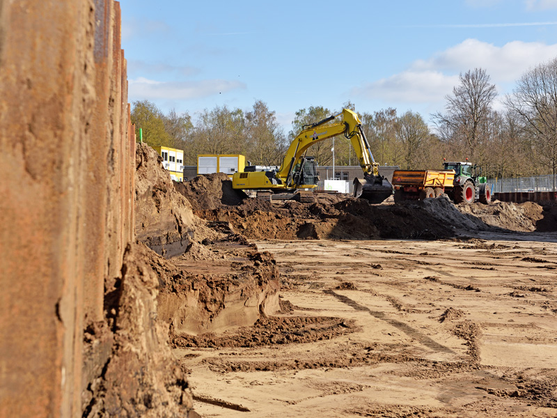 – Het ontgraven, in depot zetten, afvoeren en aanvullen tot grondwal van ca. 9.000m3 grond.